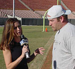 Sunday night following the Ravens waxing the Cowboys on Fox-11 in Los Angeles, reporter Lisa Guererro went live from the Team X mini camp at the Coliseum. Lisa goofed around with quarterback Tommy Maddox, who played along gamely. Tight end Josh Wilcox also refused to let the camera intimidate him. Lisa plans on returning to Camp X in December to cover the team on a regular basis.