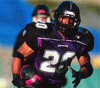 The XFL’s leading rusher with 800 yards, he helped lead the Enforcers to the XFL Playoffs. He averaged a league-best 5.3 yards per carry and scored seven TDs, which was 2nd in the XFL. He also had the two best single-game marks of 180 yards vs. Birmingham in week 8 and 157 yards against Orlando in week one, when he earned Player of the Week honors.